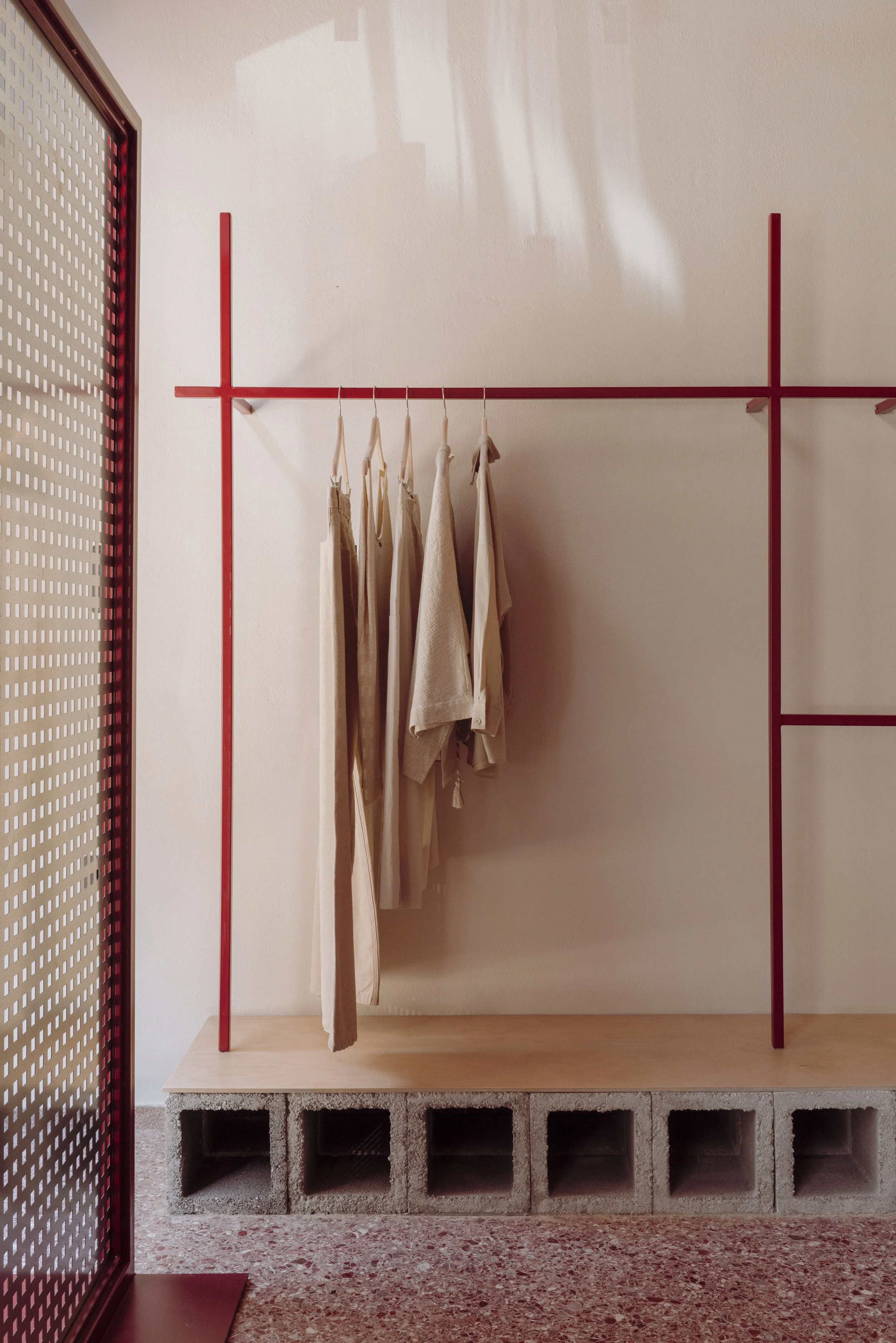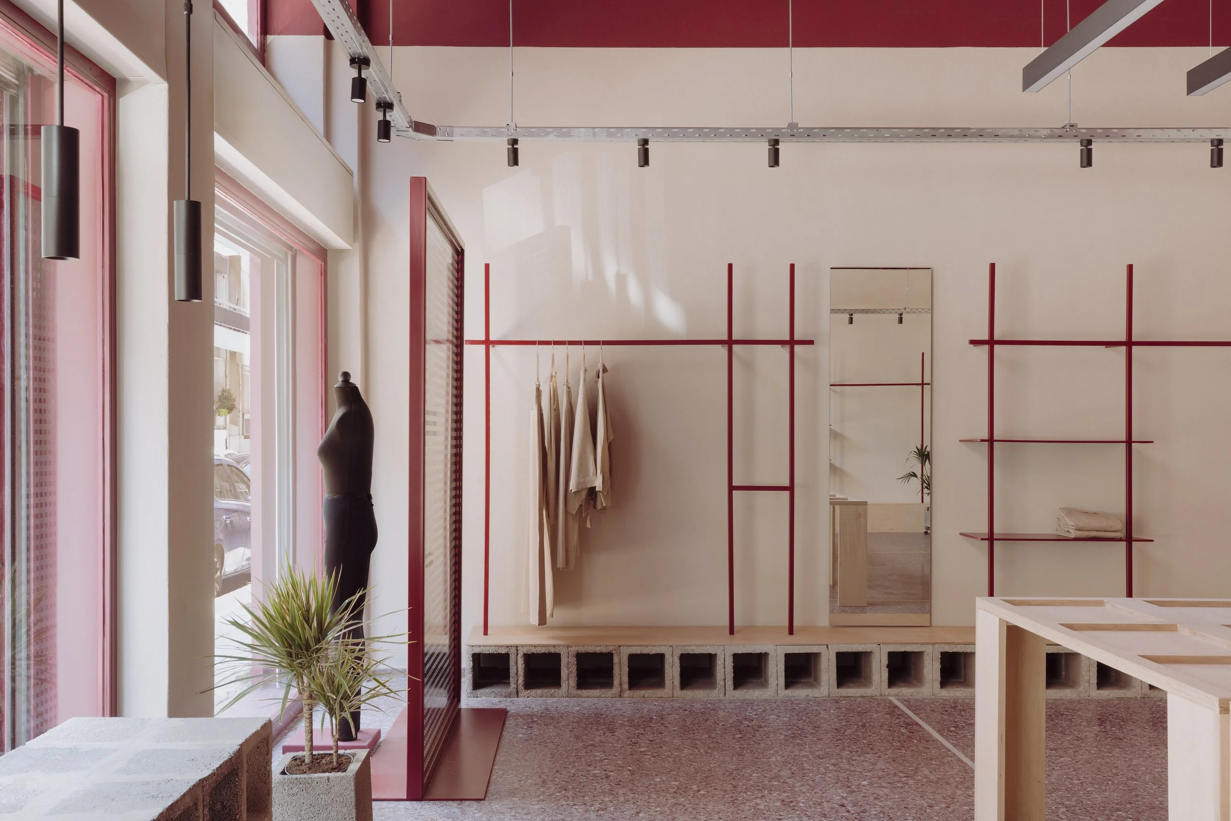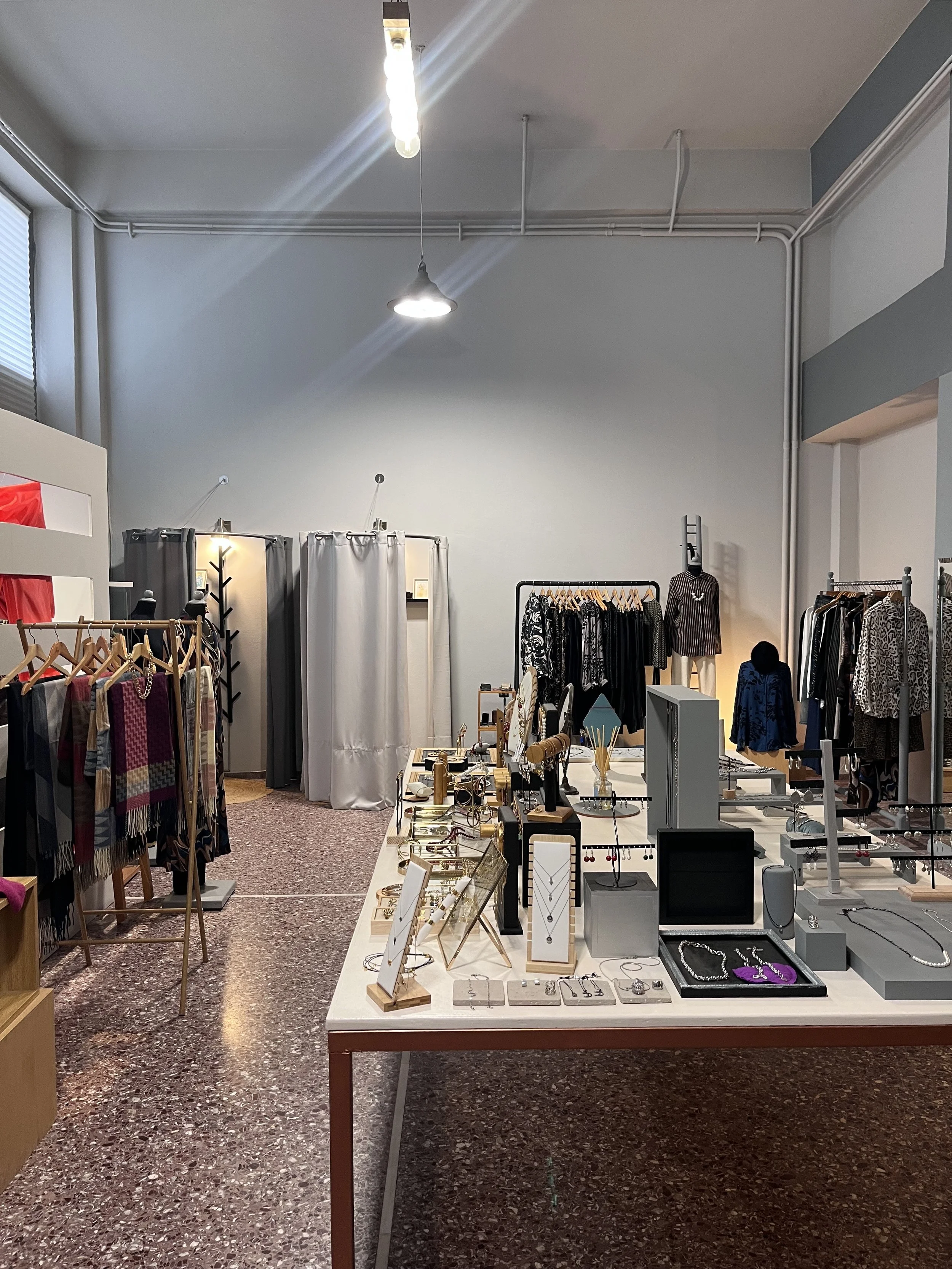 In a quiet neighborhood of Pagrati, a 100 sq.m. ground-floor shop is reintroduced through a subtle yet intentional architectural intervention. A space with a rich and varied history — from a handmade fabric flower workshop in the 1970s, to an auto repair shop, a photography studio, and now a clothing and jewelry store — is given a new, contemporary identity that feels both approachable and familiar.
